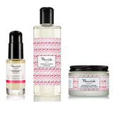 Relax and indulge with our beautifully scented Geranium & Jasmine Shower Gel and Body Cream. Packed with deeply nourishing and naturally protective shea butter and trehalose and firming prickly pear and brown algae for smoother, radiant skin. Boost your skin's natural luminosity with our Radiance Rejuvenating Peptide Serum, a potent and highly effective hydrator with light responsive bio-actives, vitamins and minerals to enhance natural radiance and giving an even skin tone. The perfect trio for radiant, glowing party skin or as a gift for a loved one, including you!